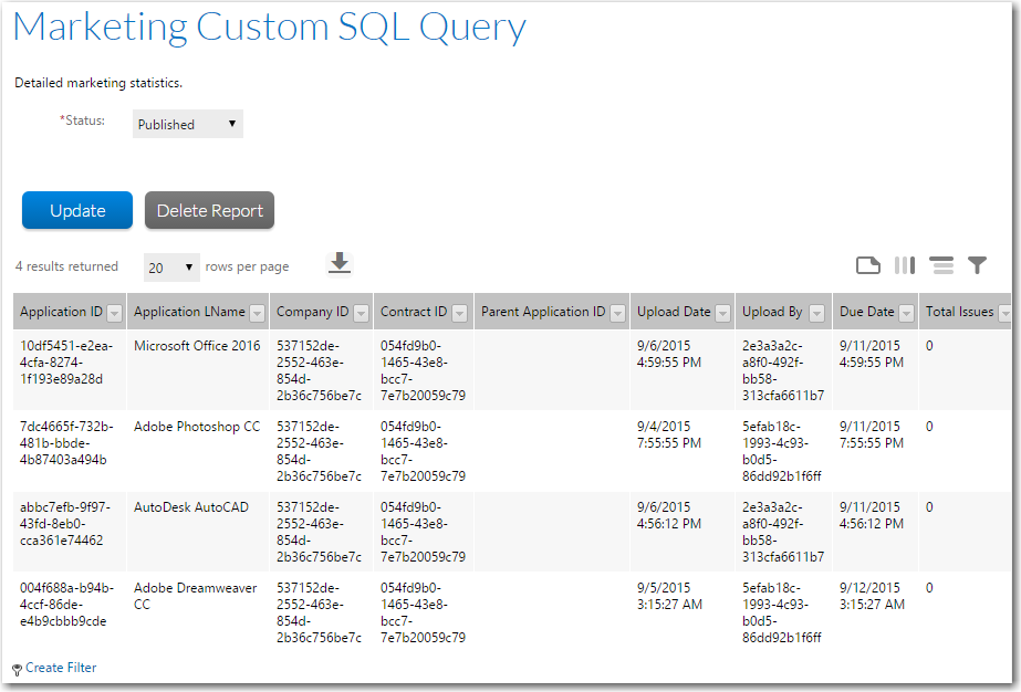 You can generate a Custom SQL Query Report to include data generated by both AdminStudio and Workflow Manager. To generate a Custom SQL Query Report, perform the following steps.