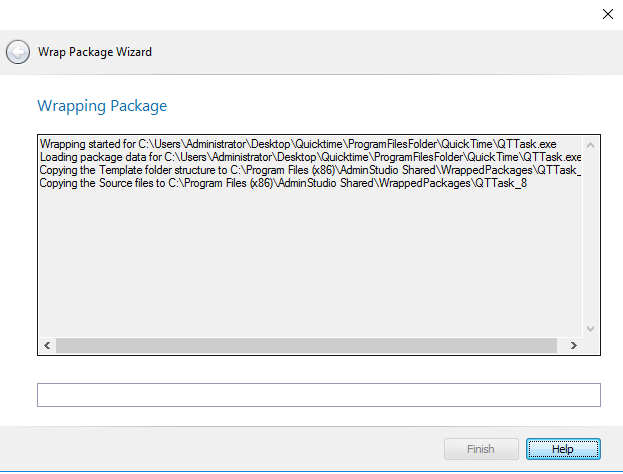 3. Click Next. The Wrapping Package panel opens and wrapping is initiated. When the process is complete, confirmation messages are listed.