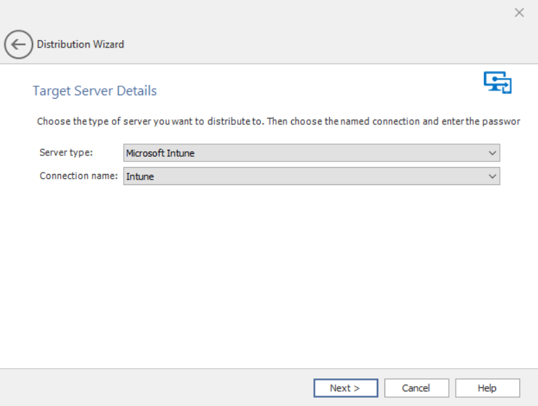 - On the Target Server Details panel, select the required Connection name from the drop down, and then click Next.